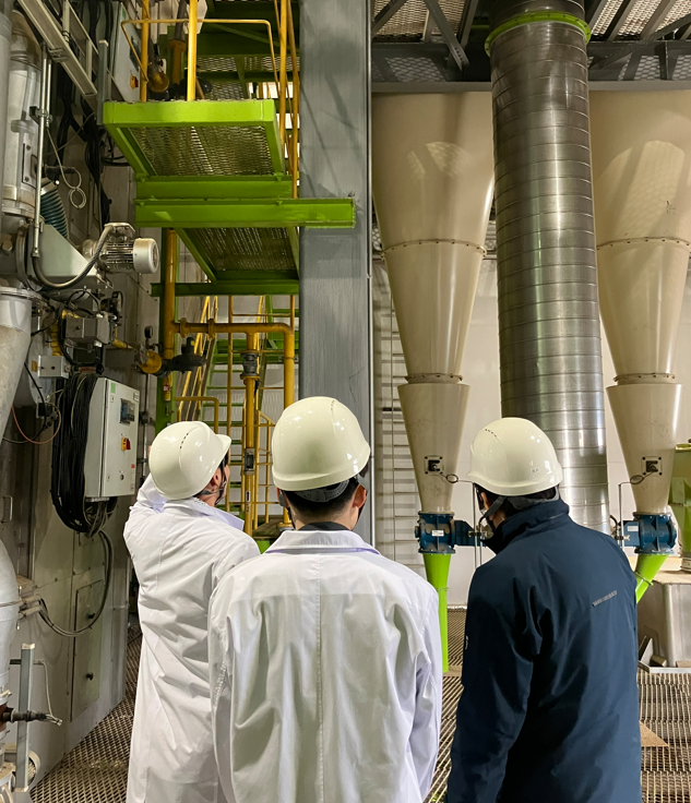 伊万里油飼工場の中を約1時間じっくり見学しながら、製造の流れや現場の工夫、仕事のやりがいについて紹介しました。